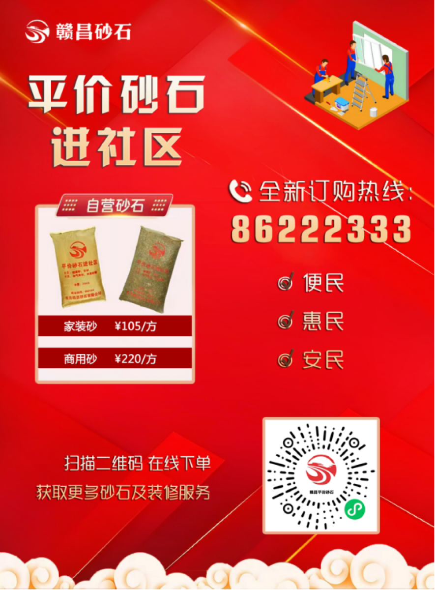 原熱線962133將于2024年7月15日停止服務,請廣大客戶知曉,并互相轉(zhuǎn)告,如給您帶來不便,敬請諒解。贛昌砂石公司將繼續(xù)秉承“便民、惠民、安民”服務理念為全市家裝客戶提供平價砂石配送服務,無論您身處哪個社區(qū),一個電話,平價砂石到您家。